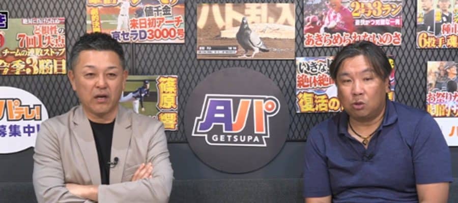 「月曜日もパテレ行き」に出演した谷繁元信氏(左)と里崎智也氏【画像:パーソル パ・リーグTV】