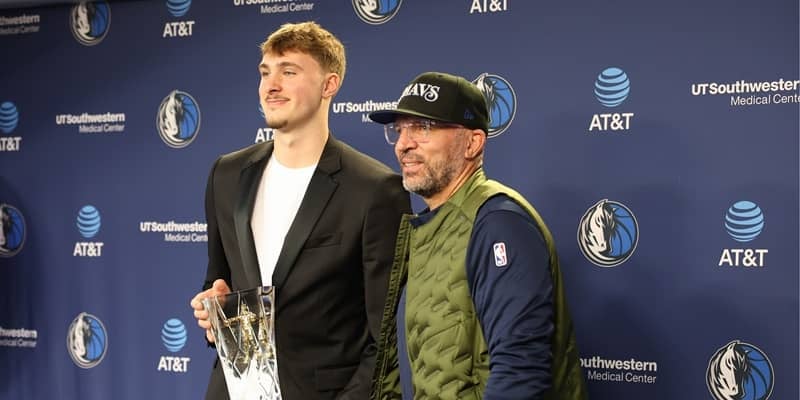 マブスの球団史上3人目の新人王に輝いたクーパー・フラッグをノビツキーが祝福 | バスケットボール