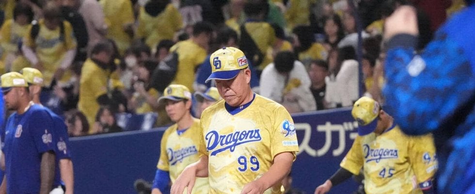 【写真】中日対DeNA 試合終了、井上一樹監督(中央)はDeNAに敗れ、整列に向かう(撮影・森本幸一)