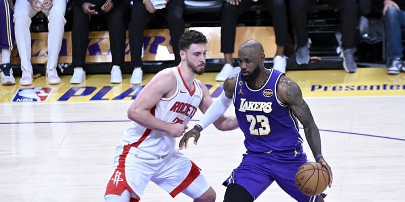 ロケッツのシェングン(左)とレイカーズのレブロン(右)[写真]=Getty Images