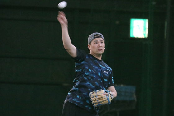 Koboパーク宮城で自主トレを行ったヤンキース・田中将大【写真:編集部】
