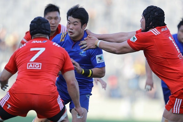 リコーは前半11分、フェイズを重ねてゴールに迫り、SH山本昌太が密集から間隙を突いて先制。21分にはCTBタマティ・エリソンが敵陣22メートルライン手前から中央を突破してトライを挙げた。