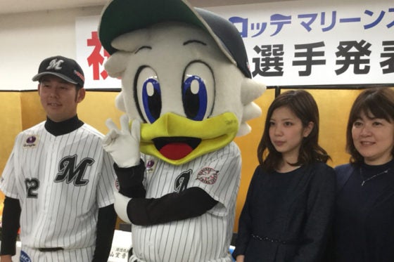 MAX154キロ右腕、ロッテのドラフト6位・永野将司投手(Honda)が5日、東京・西新宿のロッテ本社で新妻とともに入団発表に臨んだ。背番号は「62」。
