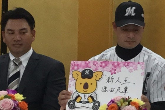 来季ロッテは鈴木大地を三塁、中村奨吾を二塁にコンバート。遊撃は、骨折故障明けの三木、3年目の平沢や大嶺翔と争うことになる。それだけに目標を書くボードには「新人王 源田先輩」と書き、改めて闘志を燃やした。(細野能功 / Yoshinori Hosono)