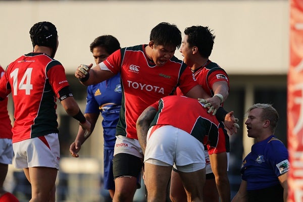 そして、トヨタ自動車は70分前後のピンチを脱出すると、キック&チェイスで敵陣深くでのマイボールスクラムへと状況を一変。FW8対8の押し合いで優勢となってボールを動かし、元南アフリカ代表のFBジオ・アプロンが鋭いステップからゴールラインを割り、勝ち越した。