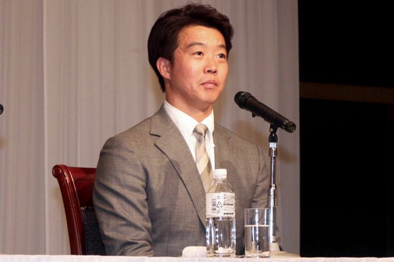 日本ハムの入団会見に臨んだ鶴岡慎也【写真:石川加奈子】