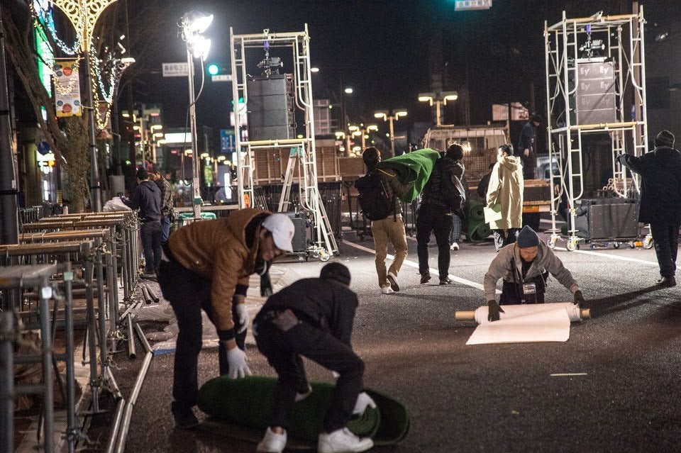 駅前の商業施設が並ぶ大通りが封鎖され、ランプは車道に設置された。歩道は観客席となった。
