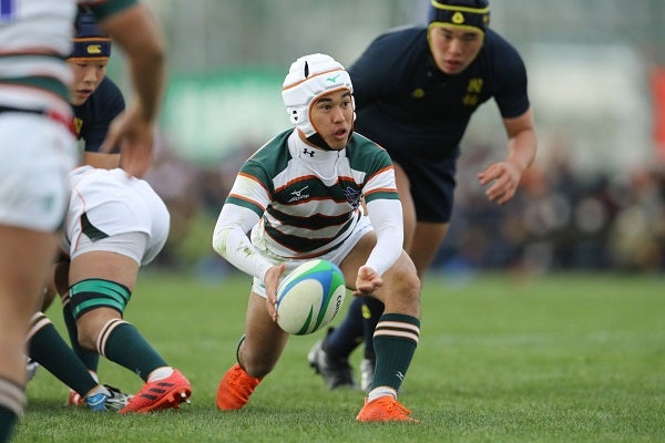 報徳学園は24分と26分にFB雲山弘貴が連続トライ、29分にはCTB江藤がゴールに持ち込み、前半だけで49-0とし、勝負を決めた。