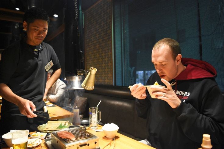 川崎ブレイブサンダースのエースにして、Bリーグ初年度の得点王&シーズンMVP。ニック・ファジーカスは圧倒的な高さと技術とクレバーさを備えた完全無欠のスコアラーだ。そのニックと焼肉で忘年会。『戦闘モード』の試合会場では聞けない話をたっぷり語ってもらった。