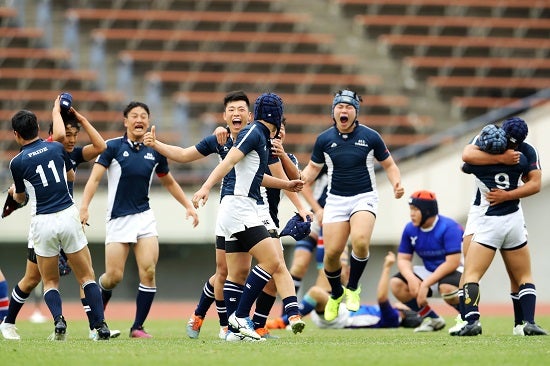 後半25分(ランニングタイム/20分ハーフ)のトライ(G成功)で21-14とし、3度目のリードを奪った大阪中学。最後まで積極的なアタックを貫いてノーサイドを迎えた。