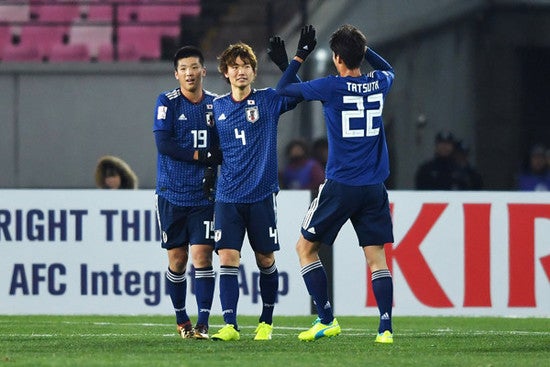 初戦のパレスチナ戦は板倉滉(中央)のゴールで勝利した