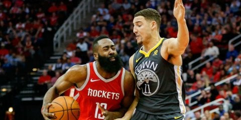 オフェンス先行のイメージが定着しているものの、対戦する側にとって本当に厄介なのは、カリーでもデュラントでも、そしてグリーンでもなく、『ジョーカー』の仮面を被ったトンプソンなのかもしれない。