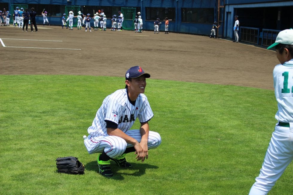 昨年の侍ジャパン大学代表での野球教室時、少年に優しく指導をする姿も印象的だった。