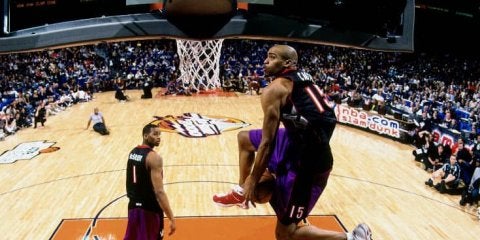 ダンクコンテスト史上最も印象に残るパフォーマンスの代表格に挙げるのは、1988年の大会でマイケル・ジョーダンがフリースローラインから決めたダンク、あるいは2000年の大会でビンス・カーターが肘までフープに突っ込んだワンハンドダンクのどちらかだろう。