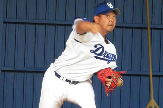 「徐々にですね、まだ全力ではない」といい、力の入れ具合は8~9割くらいだろうか。捕手を座らせて、カーブ、スライダー、チェンジアップ、カットボール、シュートと変化球も交え、60球を投げ込んだ。