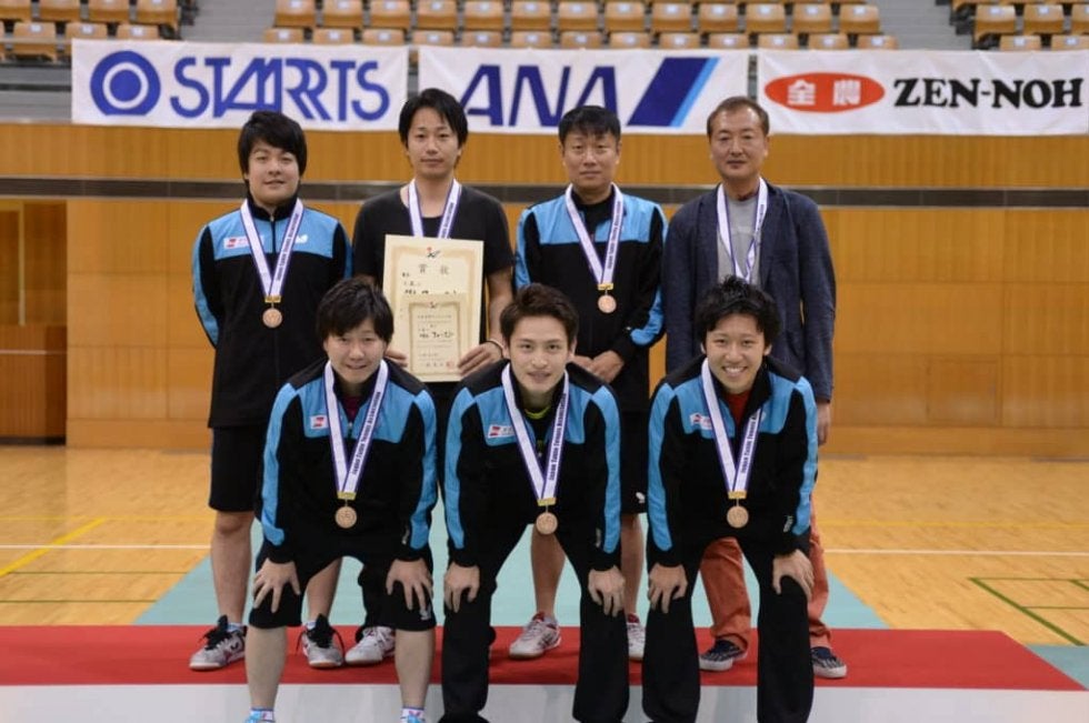 写真は2016年に全日本実業団卓球選手権大会でベスト4に入った際のもの。後段左から:岸川選手、伊藤氏、柳澤部長、浜野総監督。前段左から:浅沼コーチ、大島選手、岡田選手。