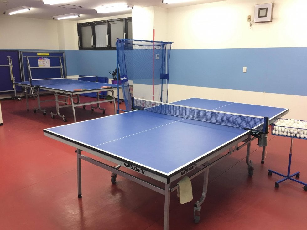 スクールはバタフライと契約しており、ボール、卓球台、フェンスなどすべてバタフライ製で揃えている。また、床は赤マットを使いクッション性に優れ、滑らないようになっている。