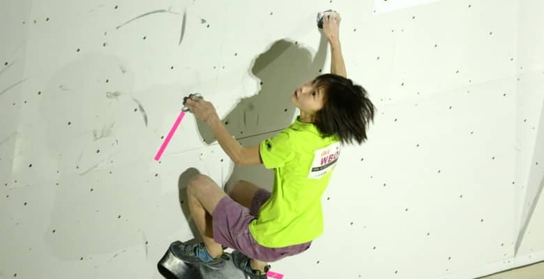 その流れに続いたのが野中生萌だ。第2課題、それまで17名の選手がボーナス獲りにすら苦戦した難関課題をオンサイト。合計3完登をすべて一撃で決めて、谷井を抜いて暫定首位に躍り出る。3完登3アテンプトの野中が首位通過を果たすかと思われたが、これを上回ったのが谷井と同じ14歳の森秋彩。第3課題まですべてTOPホールドを手中に収めると、最終第4課題はスタートのコーディネーションに苦戦し10トライを要したものの、驚異の粘りで頂上へ。唯一の全完登で首位通過となった。そのほか野口啓代、伊藤ふたば、尾上彩が決勝へ駒を進めている。