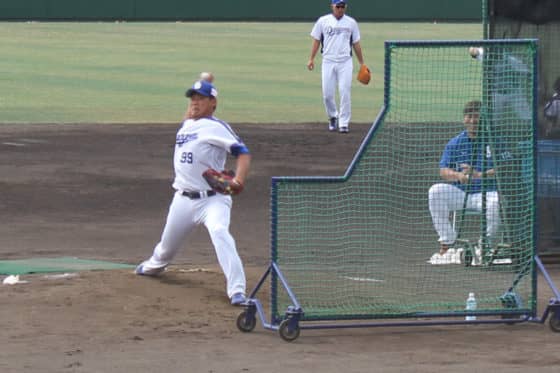 この日はブルペンで35球を投げてから、北谷公園野球場のマウンドに上がった松坂。昨季18本塁打を放った福田は140キロの直球でバットに空を切らせ、京田はスライダー、カットボールで3度、空振りを奪った。最速は141キロを計測し「140キロは出てくれと思っていたので良かった」と納得の表情を見せた。