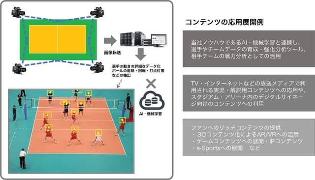 このほか、TVやインターネットといったメディアで放送されるスポーツ中継、ニュースなどの放送コンテンツに4次元データを情報として付加することや、会場内での大型ビジョンを通じたコンテンツ配信などに利用できる。