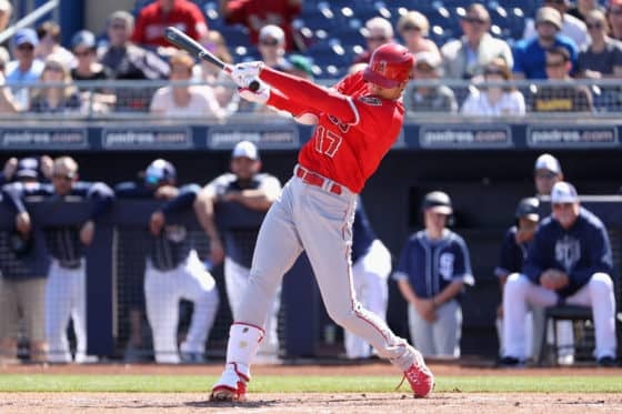 エンゼルス大谷翔平投手が26日(日本時間27日)、米アリゾナ州ピオリアでのオープン戦・敵地パドレス戦に「2番・DH」で打者デビュー。2四球を選んだ後の第3打席でセンター前に適時打を運び、初安打初打点を記録した。