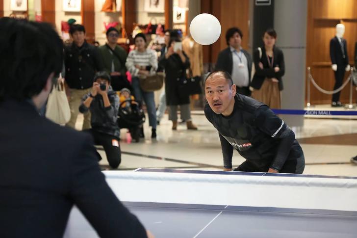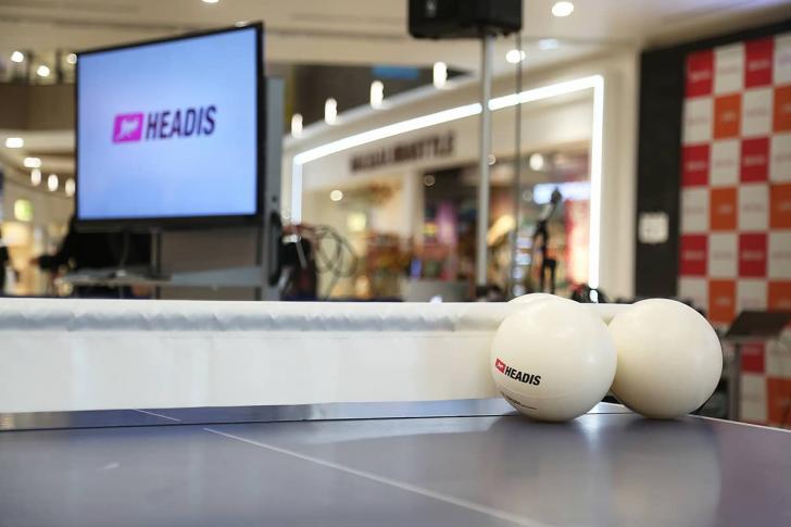 「へディス」とはサッカーのヘディングと卓球をミックスした競技で、卓球台を挟み直径16センチのゴムボールを打ち合う、いわば”ヘディング卓球”。台が体に触れてもOKで、全身を使ってボールを打ち返すダイナミックな競技性が世界中で話題に。