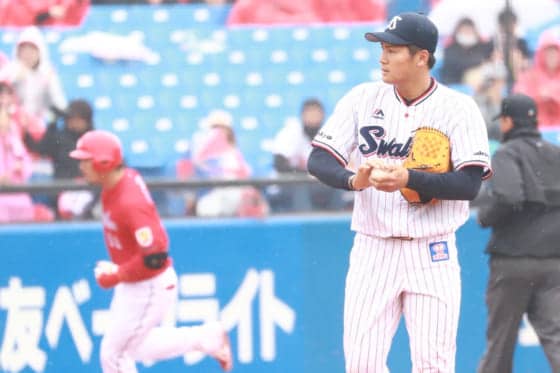 3点を追う3回に鈴木に左中間へ特大ソロ許す 開幕ローテ入りをかけて16日の広島戦(神宮)に先発した、ヤクルトの高卒(履正…