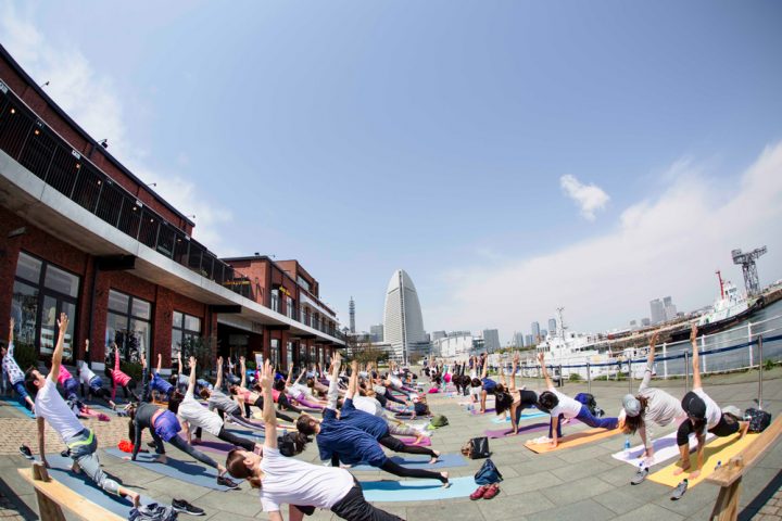 横浜みなとみらいの海沿いのオープンモール「MARINE & WALK YOKOHAMA」で、海を見ながらヨガを楽しむイベントが4月14日、15日の2日間にわたり、開催されます。