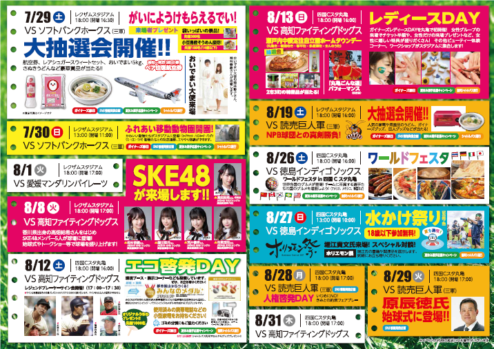前期に実施した、来場者からのアンケートを参考に7月末から8月に掛けての約1ヶ月間に行われるホームゲーム全12試合では、野球ファンの方だけでなく、ファミリーやカップル、友人などで楽しめる様々なイベントを開催しました。