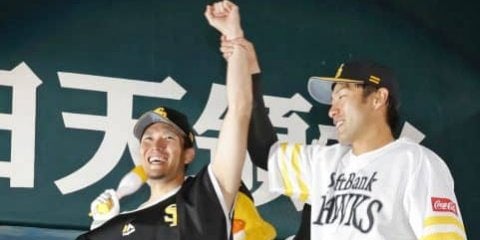 オリックスに勝利し笑顔のソフトバンク・千賀。右は柳田=ヤフオクドーム【写真提供:共同通信社】ソフトバンクは0-0で迎え…