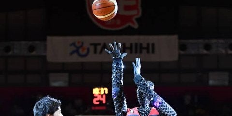 AIバスケロボの『CUE』(キュー)がアリーナ立川立飛でお披露目、馬場雄大との初勝負は引き分けに