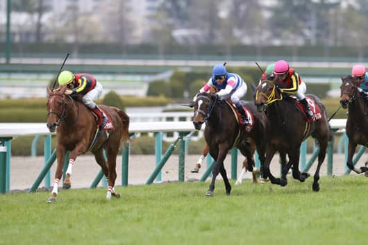 前哨戦のチューリップ賞はラッキーライラック(左)が快勝した
