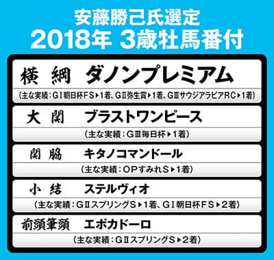 そこで、3歳牝馬に続いて3歳牡馬についても、競走馬の目利きに長(た)けた安藤勝己氏に分析・診断を依頼。そして、皐月賞、ダービーでの活躍が期待される、独自の「3歳牡馬番付」を選定してもらった――。