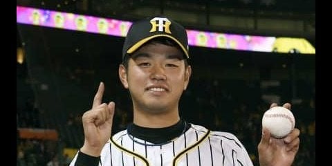 阪神―広島2 プロ初登板勝利を挙げ、ボールを手に笑顔の阪神・高橋遥=甲子園【写真提供:共同通信社】阪神は初回、1死一塁…