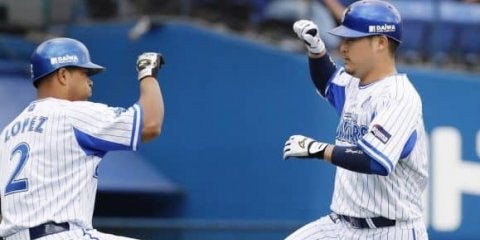 1回、先制ソロを放ち、ロペス(左)とタッチするDeNA・筒香=横浜【写真提供:共同通信社】DeNAが破竹の7連勝。DeN…