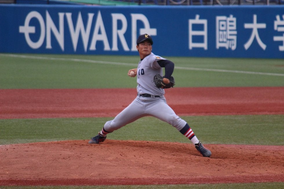 2試合で5投手を起用した慶大・大久保秀昭監督は「加藤(現広島)頼みだった頃より投手の枚数は増えてきました」と投手力の向上を語った。※写真は9回を締めた石井雄也投手(3年・慶應志木)
