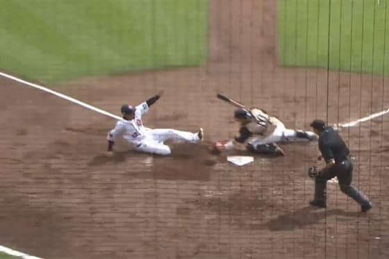 【動画】“神の手”ならぬ“神の足”!? Bsマレーロが本塁クロスプレーで見せた技あり走塁