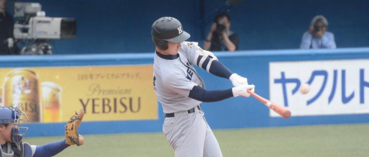 初回から試合が動く。慶大は初スタメンの小原和樹(環3・盛岡三)のレフト前ヒットと柳町のデッドボールで1死一・二塁のチャンスを作る。迎えた4番の郡司裕也(環3・仙台育英)はサードゴロを打つが、サードの送球がセカンドに間に合わず。満塁となって、前の試合で2安打を放った嶋田に打席がまわるが、ここは空振り三振。しかし、続く内田蓮が冷静に四球を選び、押し出しで2試合続けて慶大が先制点を挙げる。続く7番の中村は高めのストレートを捉え、右中間に鋭い打球を放つが、相手のライト杉本の好プレーに阻まれ、スリーアウト。3者残塁で追加点を奪えずにこの回攻撃が終了する。