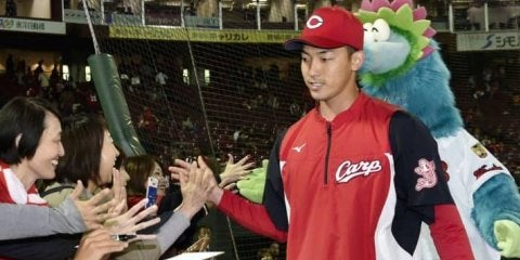 今季初勝利を挙げ、ファンとタッチする広島・中村祐=マツダ【写真提供:共同通信社】 今季初先発となった広島東洋の中村祐太が…