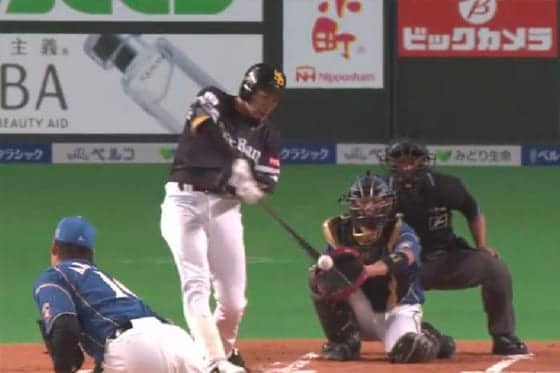 【動画】豪快なフルスイングで右中間スタンドへ! ソフトバンク・柳田の先制ホームラン!