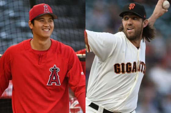 エンゼルスの大谷翔平とジャイアンツのマディソン・バムガーナー【写真:Getty Images】
