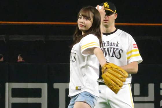 ソフトバンク対西武でHKT48渕上舞が始球式 ワンバン投球に「総選挙より緊張」 | 野球