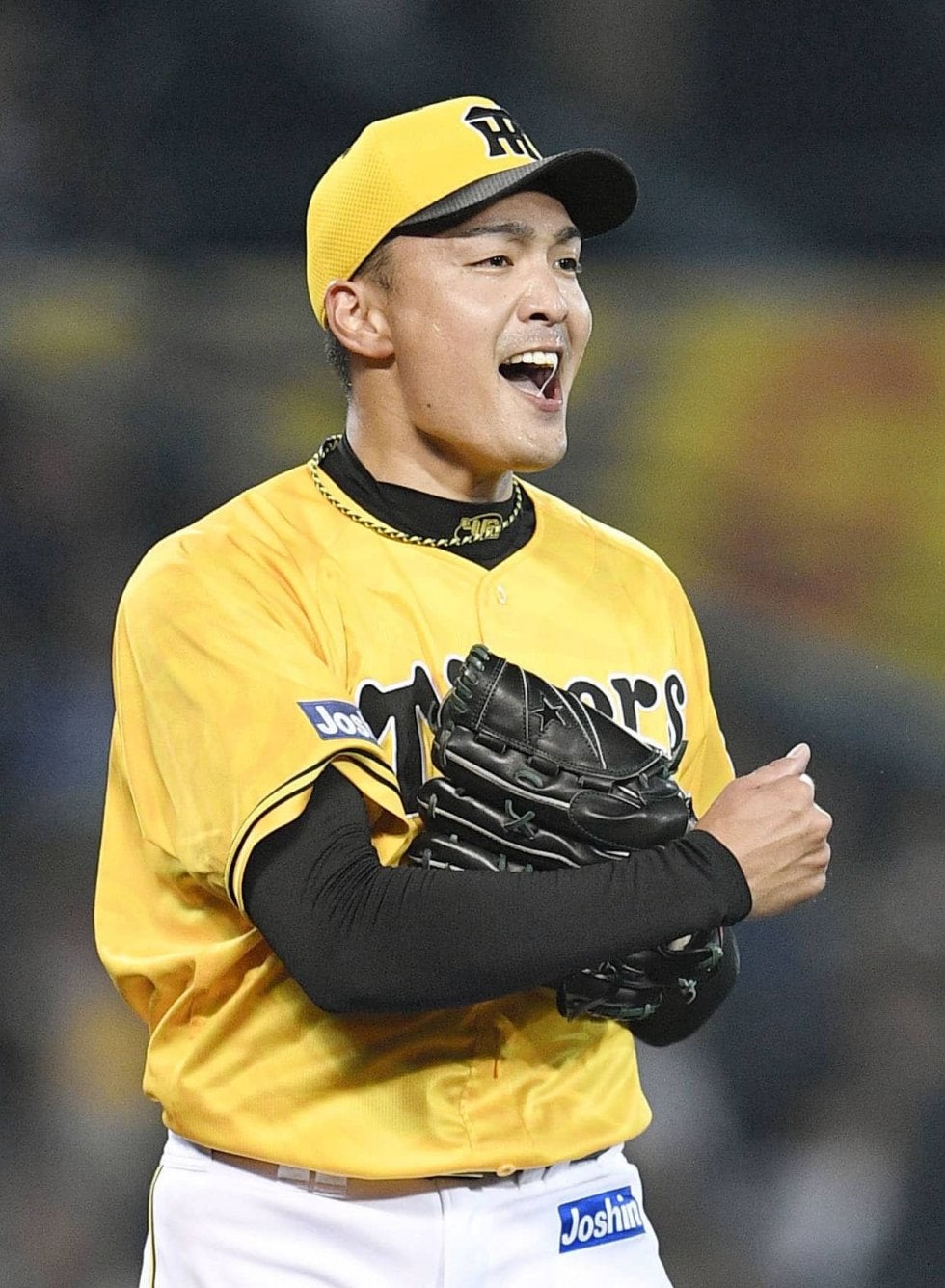 5回DeNA2死三塁、柴田を三振に仕留め、雄たけびを上げる阪神・秋山=甲子園【写真提供:共同通信社】阪神は初回、糸井の適…