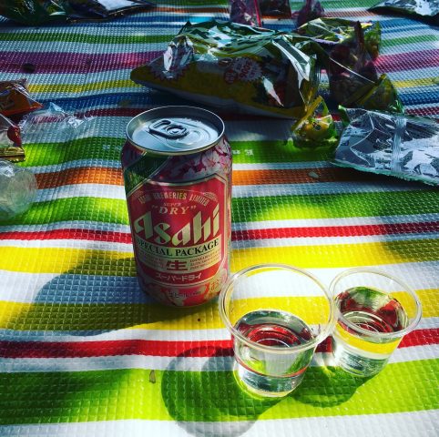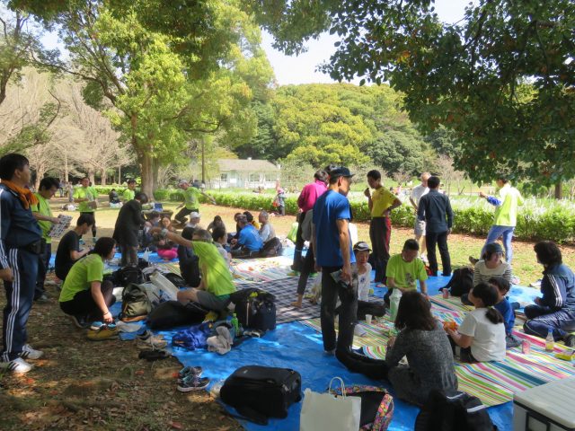 およそ60分~90分かけて歩いた後は、お酒やお菓子を持ち寄って、みんなで和気あいあいの様子。取材当時の4月はお花見シーズンだということもあり、自然と大宴会が始まりました。