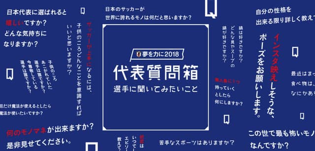 「代表質問箱II」は、サッカー日本代表選手がサッカーに関することからプライベートなことまで、ファンが聞きたいことに答える動画だ。2018年1月に公開した第1弾が好評だったため、日本代表の夢を全国の人たちと共有し、応援の輪を広げ、日本代表の戦う力にする応援プロジェクト「夢を力に2018」の一環として、第2弾を公開した。