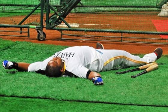 柵越え連発とはいかなかったが鋭い打球を次々と外野に飛ばし、打ち終わるとケージを出て、すぐに大の字に伸びた。「いい当たりもあったし、いい練習ができた」と手応えは感じたようだ。