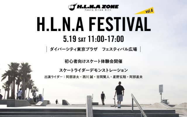 ダイバーシティ東京 プラザは、スケートボードイベント「H.L.N.AFESTIVAL vol.4」を5月19日(土)に開催する。
