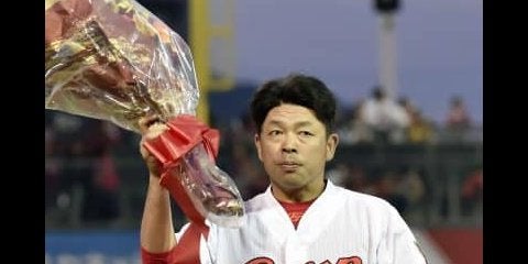 3回、通算千安打を達成し花束を手にする広島・石原=マツダ【写真提供:共同通信社】 広島東洋の石原慶幸が11日の阪神戦で今…