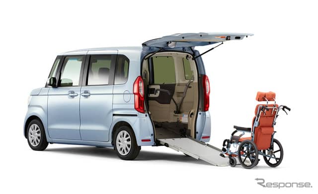 N-BOXスロープ仕様は、車いすに乗ったまま後席に乗車できる「車いす乗車モード」に簡単な操作で切り替えが可能。荷室の床を引き出すとそのままスロープになるほか、手すりをワンタッチで設置できるなど、車いすの人、介助する人、双方にとってシンプルな使い勝手を実現した。
