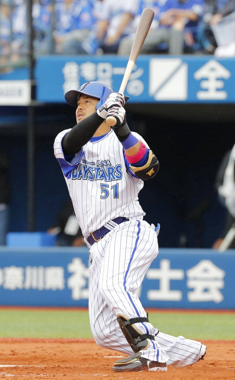 1回DeNA2死三塁、宮崎が左越えに同点2ランを放つ=横浜【写真提供:共同通信社】